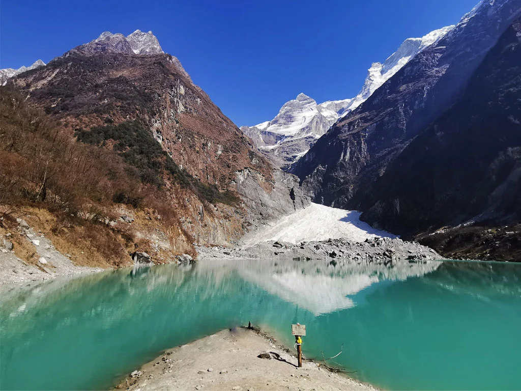Kapuche Lake is the lowest altitude glacial lake in Nepal, offering a rare chance to witness a pristine glacier-fed lake surrounded by the majestic Himalayas.