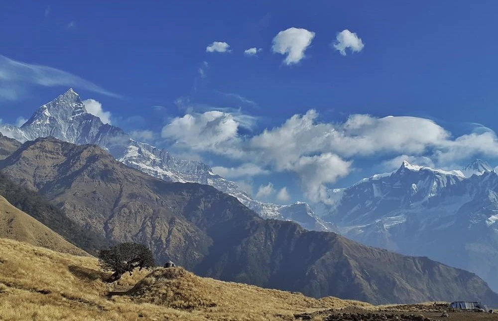 The trek provides close-up views of Machhapuchhre, Annapurna, and Mardi Himal, making it a perfect alternative to more crowded routes in the Annapurna region.